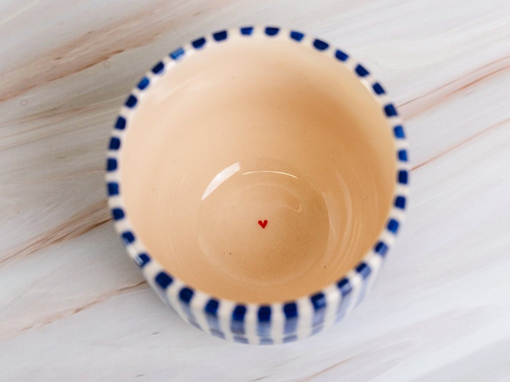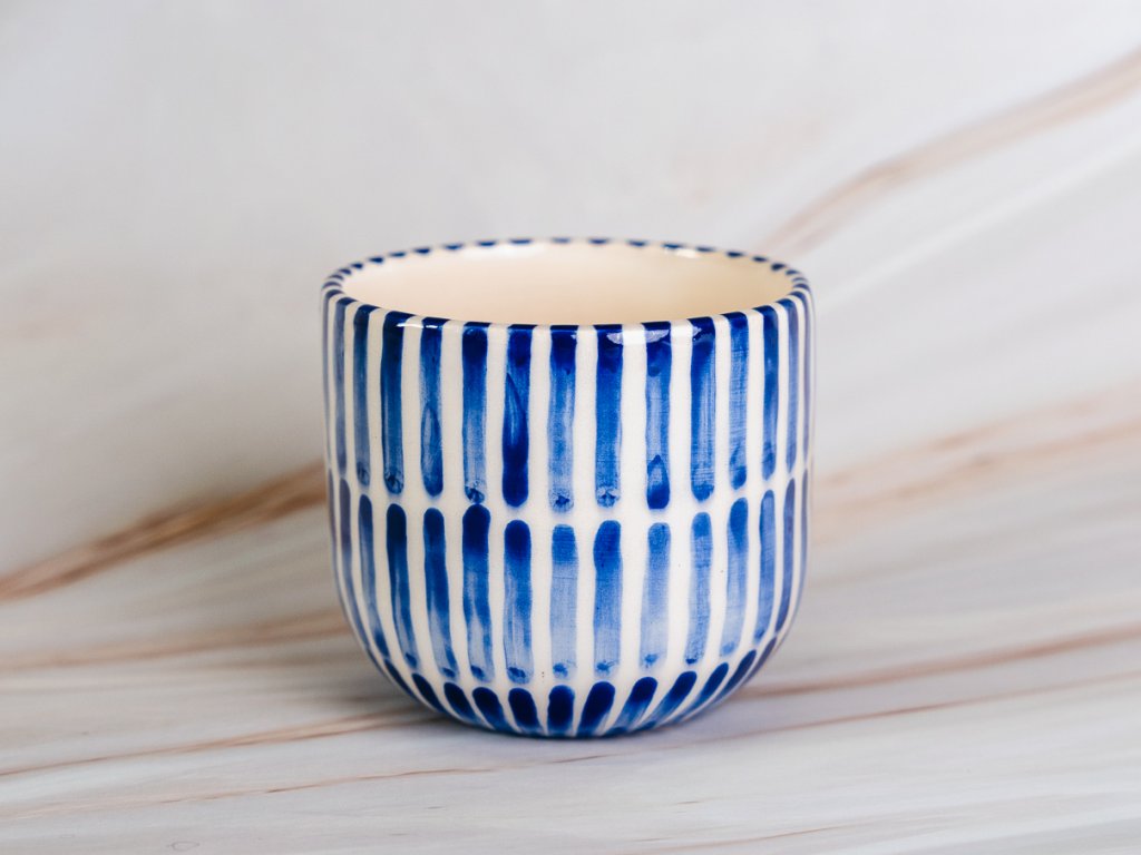 Kanafásek je ručně vyráběný keramický hrnek s výrazným modrým dekorem, který připomíná staré hrnky z chalupy – jen v modernější, čistší podobě. Je pevný, příjemně těžký do ruky a díky oušku se z něj pije tak dobře, že ho prostě nechceš pustit.