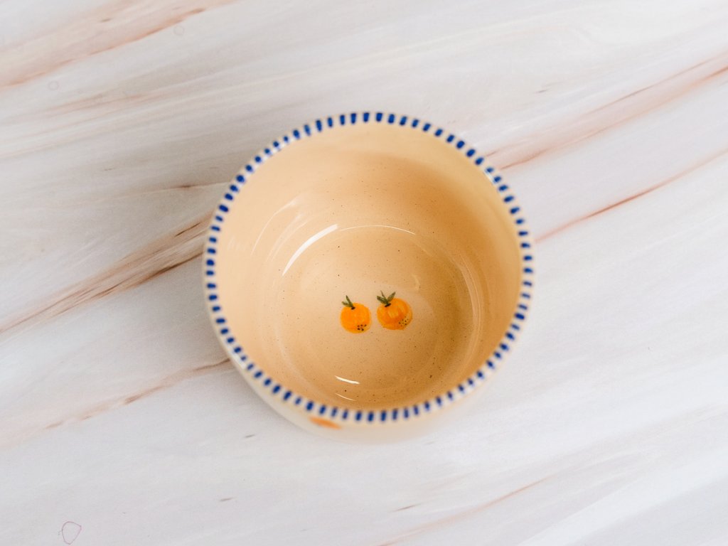 Pomík je keramický hrnek, který ti rozsvítí den, i když je venku zataženo. Ručně malovaný drobnými pomeranči, co vypadají, jako by se právě skutálely ze stromu do tvé kuchyně. Každý kousek je originál – má vlastní tvar, tah štětce i osobnost.