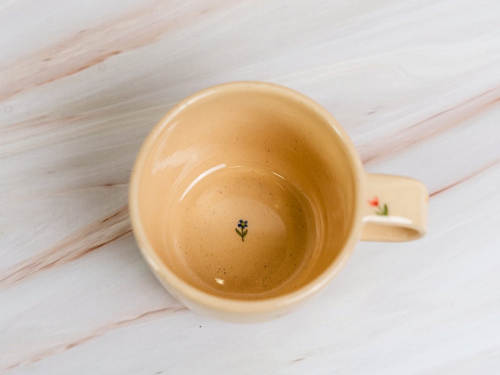 Prostě jaro Hug je větší varianta našeho hrnku s ručně malovanými kvítky. Má ucho, ale zároveň je tvarovaný tak, že ho můžeš vzít do dlaní a jen tak chvíli zůstat. Na teplý čaj, na kávu, na kakao, na rána, kdy si chceš dopřát víc než jen „rychle něco“.