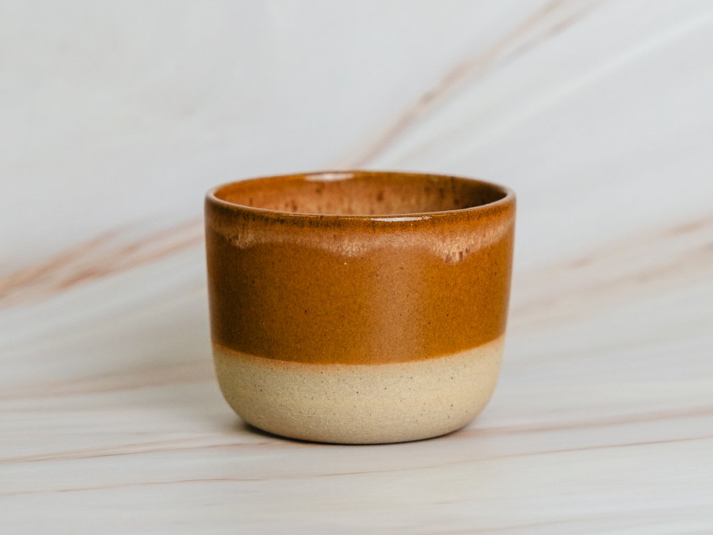 Warm & Cozy je ideální společník na líná rána i klidné večery. Ručně vyráběný z keramiky, s jemným přechodem teplé karamelové glazury a přírodního povrchu, dokonale padne do dlaně. Každý kus je originál — stejně jako každý moment s ním.